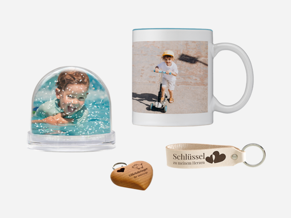 Von der Fototasse über persönlich gestaltete Schlüsselanhänger bis zum Kissen mit Ihrem Foto – hier finden Sie viele Anregungen, was Sie aus Ihren schönsten Bildern selbst gestalten können.