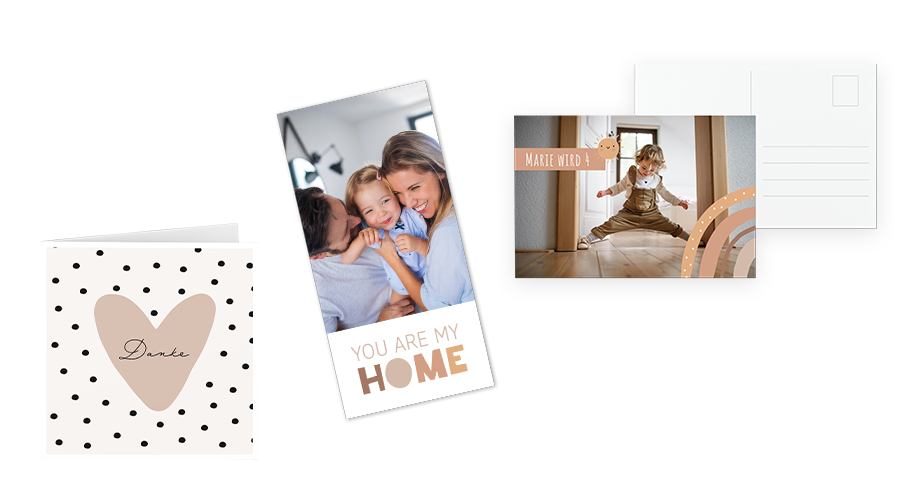 Gestalten Sie Ihre individuellen Klappkarten, passend zu Ihrem Anlass. Ideal geeignet für die Hochzeitseinladung, mit persönlicher Widmung zum Geburtstag oder für die Weihnachtsgrüße.